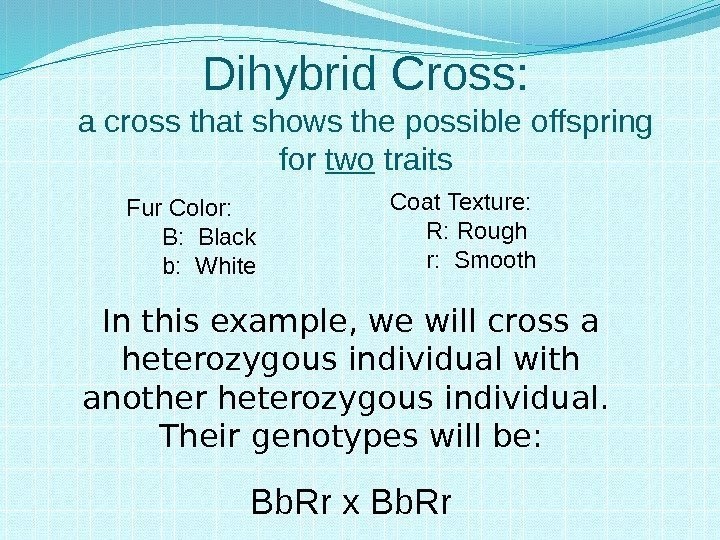 A =able to roll a= not able. Allele, dihybrid cross, genetic cross, inheritance, monohybrid cross, single trait cross, traits, two traits cross. Dihybrid crosses involve manipulation and analysis of two traits controlled by pairs of alleles at different loci. The two pairs of contrasting characteristics chosen by mendel were shape and colour of seeds: The two pairs of contrasting characteristics chosen by mendel were shape and color of seeds: This one character is responsible to bring about the change in specie. Your instructor will review with you the basics for working genetics problems. • a dihybrid is an individual that is heterozygous at two genes (yyrr). E) a monohybrid cross results in a 9:3:3:1 ratio whereas a dihybrid cross gives a 3:1 ratio. Recessive in the gene with alleles a and a from the cross. In other words, a dihybrid cross is a cross between two organisms, with both being heterozygous for two different traits. The cross shows how two different genes are inherited at the same time. For example, in the cross body colour x in a dihybrid cross, the proportions of flies with various combinations of both characters can be calculated as: